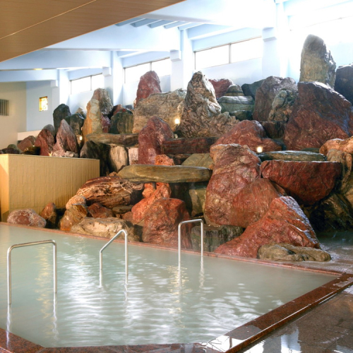 四国を中心に全国各地から珍しい石を集め、立山連峰に見立てて組み上げた岩風呂や、広々とした露天風呂が人気です。ご家族でお入りいただける貸切風呂やマッサージ、あかすり(※別途料金)も人気です!