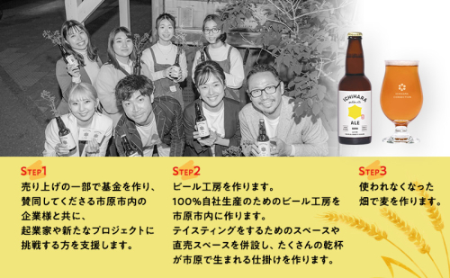 100%自社生産のためのビール工房を市原市内に作ります。テイスティングをするためのスペースや直売スペースを併設し、たくさんの乾杯が市原で生まれる仕掛けを作ります。