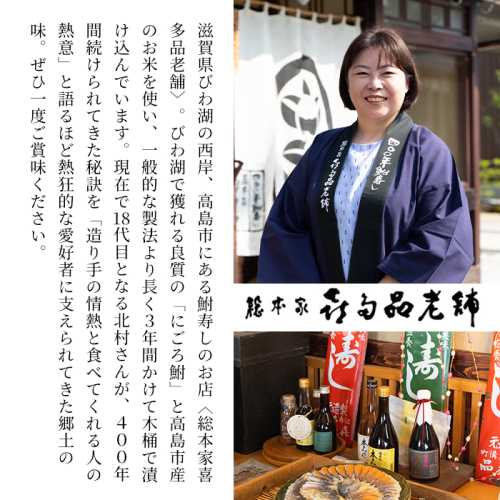 びわ湖産の希少なにごろ鮒と、高島産こしひかりを使い、じっくりと熟成。