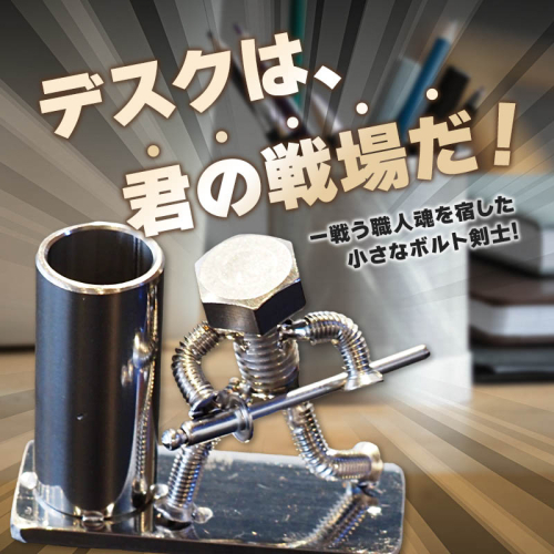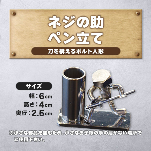 商品名:ネジの助ペン立て 刀を構えるボルト人形 ネジの助ペン立て