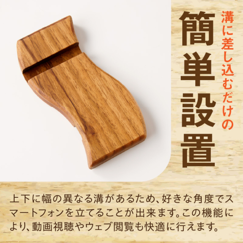 スマホを溝に差し込むだけで簡単に設置でき、上下に幅の異なる溝があるため、好きな角度でスマートフォンを立てることが出来ます。この機能により、動画視聴やウェブ閲覧も快適に行えます。