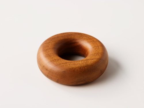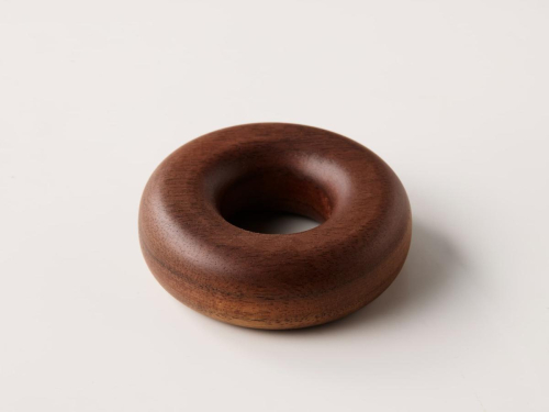 ウォルナットとクルミの木そのままの色味を生かした2色のドーナツを作りました。扱いやすいようにウレタン塗装しています。