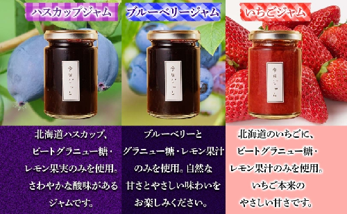 - 【ふるさと納税】ジャム3種セット 各1個 ハスカップジャム ブルーベリージャム いちごジャム 今日ジャム 北海道産 自家製 パン ヨーグルト 朝食 濃厚 甘い デザート スイーツ おやつ グルメ ご褒美 贅沢 ギフト 送料無料 北海道 滝川市