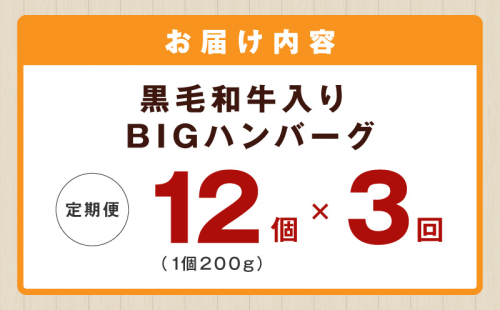 - 【定期便】黒毛和牛入り BIGハンバーグ(200g×12個)全3回 【毎月配送コース】 099Z412