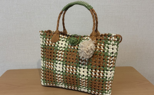 クラフトテープで丁寧に四つたたみ編みでバッグを作りました。