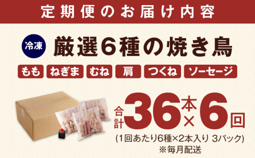 - 【定期便】焼き鳥 6種36本セット×全6回 やきとりのタレ付き 個包装 【毎月配送コース】 099Z415