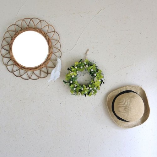 ※つる製のベースにお花やグリーンをひとつずつつけて手作りしていますので、形や大きさ、色に個性があります。