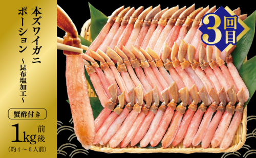 【3回目】本ズワイガニ ポーション 1kg前後 蟹酢付 約 4-6人前