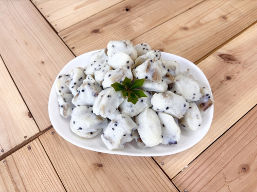 【原材料】魚肉すり身(国内製造)、種物(ごぼう、黒ごま)、砂糖、植物油、食塩、ブドウ糖/糊料(加工澱粉)、調味料(アミノ酸等)、pH調整剤、(一部に乳、ごまを含む)