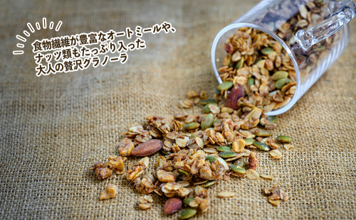 食物繊維が豊富なオートミールや、ナッツ類もたっぷり入った大人の贅沢グラノーラ。