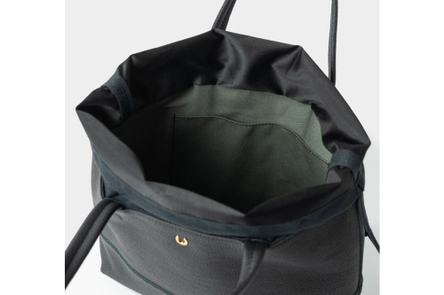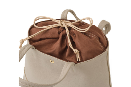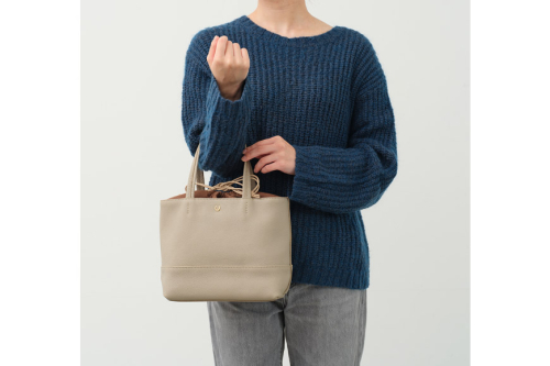 開口部は巾着仕様になっていて、紐をしぼらないときはオープントートとしてお使いいただけます。