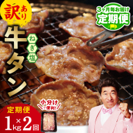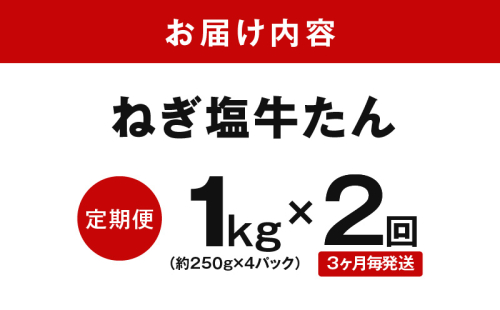 【定期便】ねぎ塩 牛たん(成型)合計 1kg 小分け 250g×4【牛タン 牛肉 焼肉用 薄切り 訳あり サイズ不揃い 2026年3月&6月発送 全2回】 099Z433