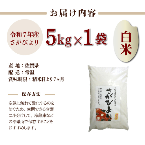 特選米100%!令和7年産さがびより(精白米) 5kg