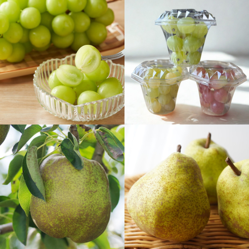 ※粒々ぶどうの品種は基本的にシャインマスカットとスカーレットが各1~2Pの合計3Pになります。パック数はお選びいただけません。