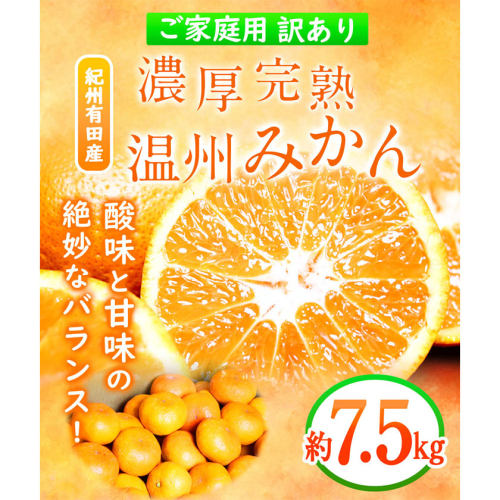 - 【先行予約】【ご家庭用訳アリ】 紀州有田産 濃厚完熟温州みかん 約7.5kg 魚鶴商店《2026年11月下旬-2027年1月下旬頃出荷》 和歌山県 日高川町 みかん 温州みかん 完熟 濃厚 柑橘 ご家庭用
