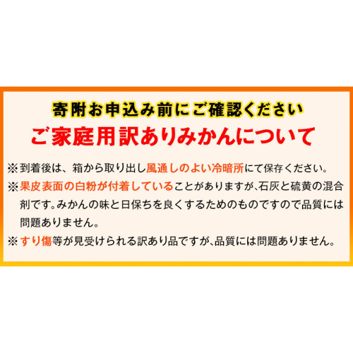 注意事項 ・果皮表面の白粉が付着していることがありますが、石灰と硫黄の混合剤です。みかんの味と日保ちを良くするためのものですので品質には問題ありません。