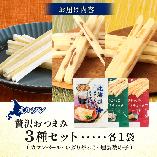 オルソン贅沢おつまみ3種セット カマンベール・いぶりがっこ・燻製数の子 各1袋 | ふるさと納税 北海道 恵庭 いぶりがっこ 数の子 かずのこ カマンベール チーズ スティック おつまみ セット 詰め合わせ 燻製 食感 サンド 珍味 家飲み 酒の肴 スモーク おやつ お取り寄せ ワンストップ マイページ オルソン 恵庭市
