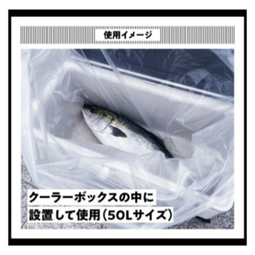 50Lサイズのクーラーボックスにぴったりフィットし、氷水や魚の汁漏れをしっかり防ぎクーラーボックスを守ります。