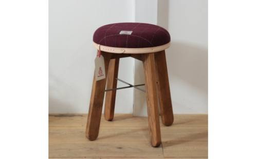 英国ハリスツイードの生地を使って、アンティークな風合いのスツールをつくりました。