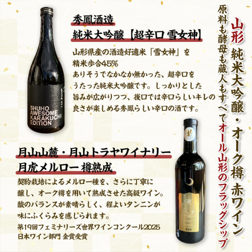山形連携中枢都市圏における共通返礼品です。山形市の地酒と西川町のワインをセットでお送りします。