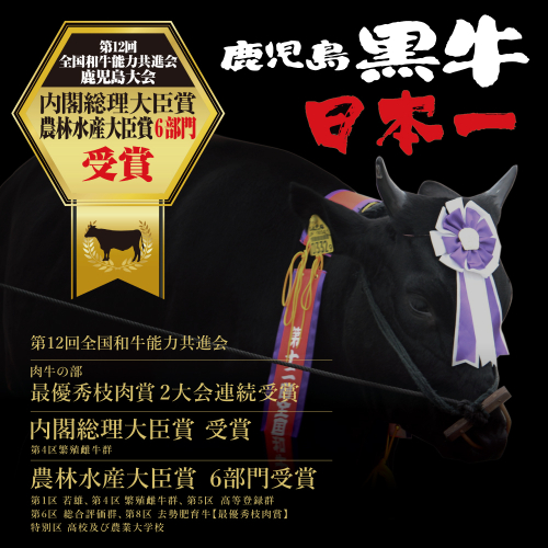 「鹿児島黒牛」は、2022年10月に鹿児島で行われた全国和牛能力共進会において、特別区を含む全区で優等賞を獲得しました。