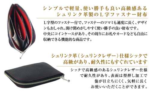 シュリンク革製L字ファスナー財布(ブラックレッド)