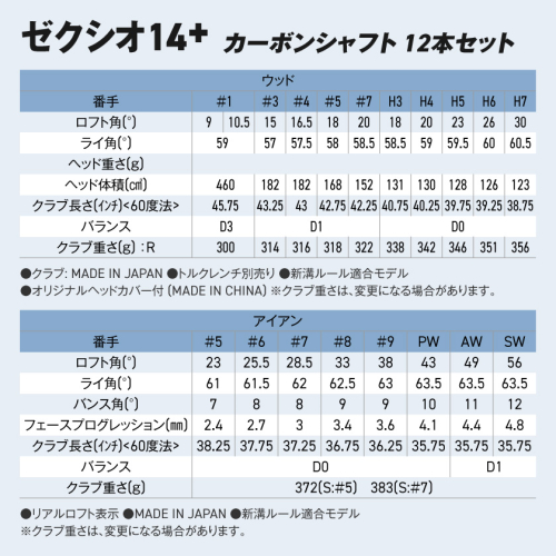 最新テクノロジーを結集したゼクシオ14+のフルセットです。