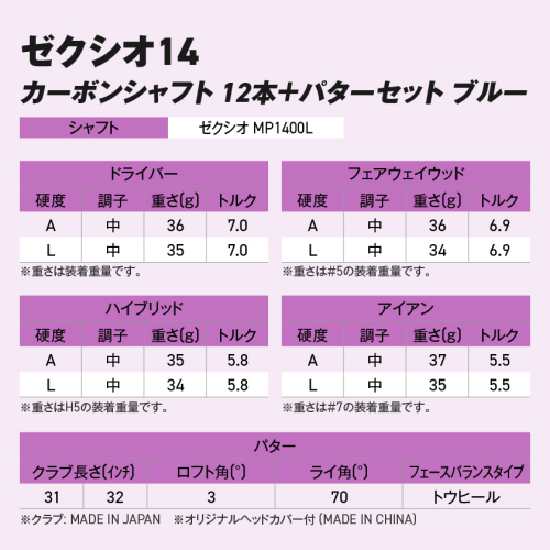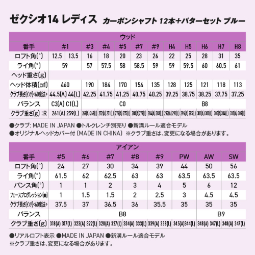 - ゼクシオ 14 レディス カーボンシャフト ブルー 12本 ≪2025年モデル≫+パターセット_IA-C703