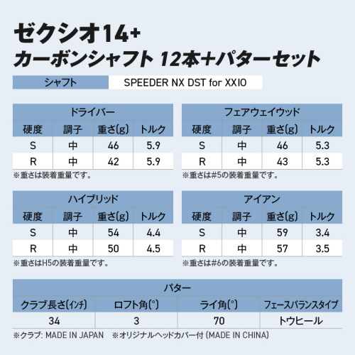 - ゼクシオ 14+ カーボンシャフト 12本 ≪2025年モデル≫ +パターセット_IA-C702