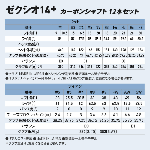 ゼクシオ 14+ カーボンシャフト 12本セット ≪2025年モデル≫
