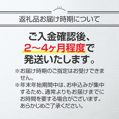 ※本返礼品は、ご入金確認後、2~4ヶ月程度で発送いたします。