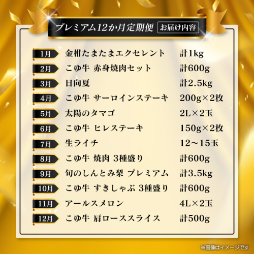- <年末年始限定!!>宮崎フルーツ&黒毛和牛 定期便 12か月 贅沢1年間お届け こゆ牛 牛肉 マンゴー ライチ メロン 梨 日向夏 ステーキ ヒレ ロース 焼肉 すき焼き しゃぶしゃぶ【G59】
