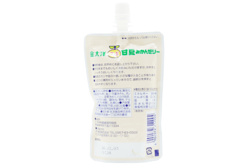 異性化液糖(国内製造)、果汁(甘夏みかん、オレンジ、みかん)、甘夏みかんさのう缶詰、砂糖・異性化液糖/酸味料、香料、ゲル化剤(増粘多糖類)、乳酸Ca