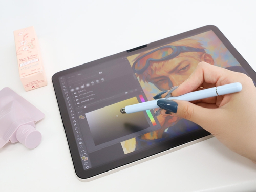 金属やカーボンなどで作られた特殊な繊維で、画面を滑るようにスムーズな操作が可能です。タッチ時にカチカチと音がしないため静かな場所でもお使いいただけます。