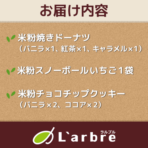 富山県産米粉焼き菓子セット(米粉焼きドーナツ:バニラ・紅茶・キャラメル、米粉スノーボールいちご、米粉チョコチップクッキー:バニラ・ココア)※北海道・沖縄・離島への配送不可