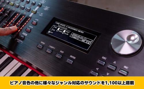 ●音源…独立2系統音源(音源1:V-Piano Technology/音源2:SuperNATURALスーパーナチュラル・ピアノ)、スーパーナチュラル(E.ピアノ、クラビ)、バーチャル・トーンホイール・オルガン、PCM音源