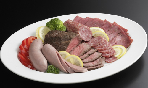 北海道産牛肉と豚肉の赤身肉に豚脂肪をほどよく加え、低温で塩漬熟成しじっくりと燻煙・乾燥して仕上げました。