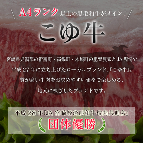 宮崎県 児湯(こゆ)郡 のJA管轄の3町(宮崎県児湯郡新富町・高鍋町・木城町)で肥育された宮崎県の誇る宮崎黒毛和牛であり、生産者とJAが一体となり肥育から製品化まで行っております。