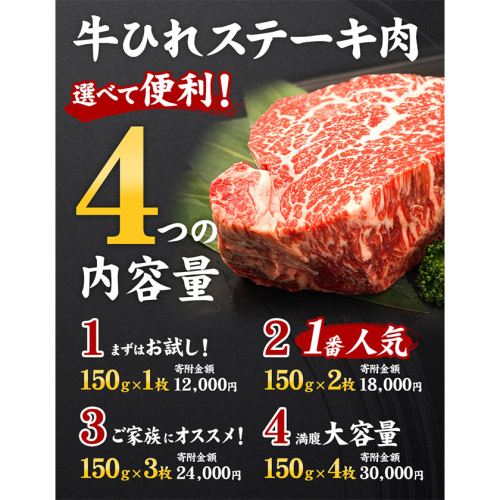 くまもと黒毛和牛 ヒレステーキ 150g 300g 450g 600g 牛肉 冷凍 《30日以内に出荷予定(土日祝除く)》 くまもと黒毛和牛 黒毛和牛 冷凍庫 個別 取分け 小分け 個包装 ステーキ肉 にも ヒレステーキ