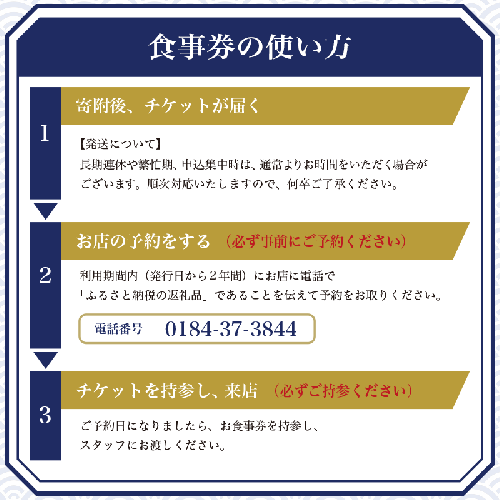本返礼品は、にかほ市内で提供される飲食サービスであるため、ふるさと納税の地場産品基準7号に該当しています。
