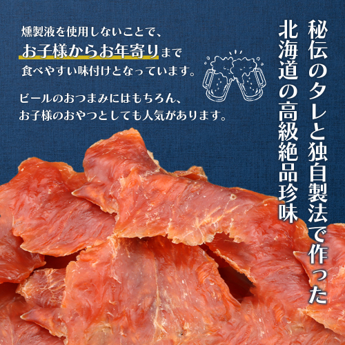 ・弊社秘伝のタレは、燻製液は使用しておりません。燻製の独特な味はせず、お子様からお年寄りまで食べやすい味付けとなっています。 ビールのおつまみにはもちろん、子どものおやつとしても人気があります。