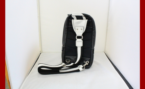 - 牛革 ボディバック(ホワイト&ブラック) かばん カバン 鞄 軽量 メッシュ素材 背面メッシュ 縦型 本革 レザー ファッション レジャー ショッピング 旅行 耐久性 スムーズファスナー メンズ レディース ギフト 贈り物 送料無料 北海道 滝川市