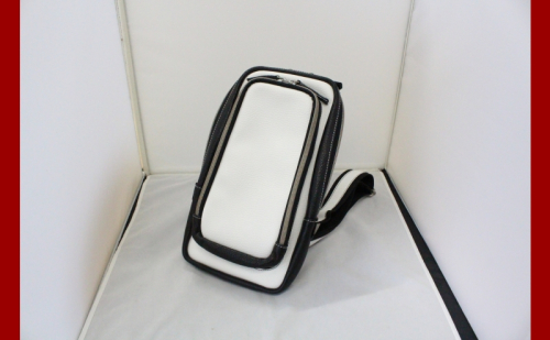 牛革 ボディバック(ホワイト&ブラック) かばん カバン 鞄 軽量 メッシュ素材 背面メッシュ 縦型 本革 レザー ファッション レジャー ショッピング 旅行 耐久性 スムーズファスナー メンズ レディース ギフト 贈り物 送料無料 北海道 滝川市