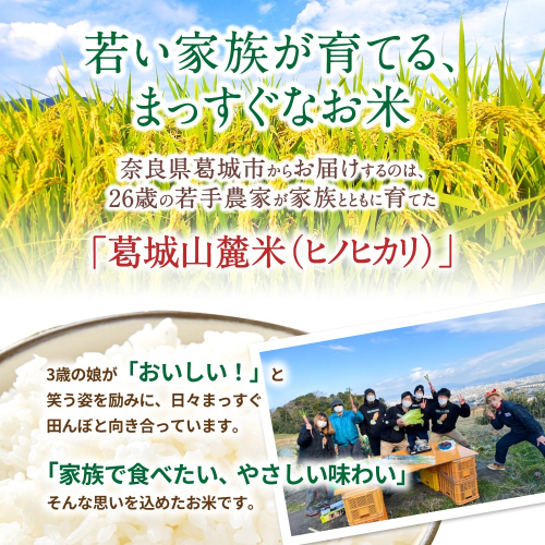 奈良県葛城市からお届けするのは、26歳の若手専業農家が家族と一緒に育てた「葛城山麓米(ヒノヒカリ)」。