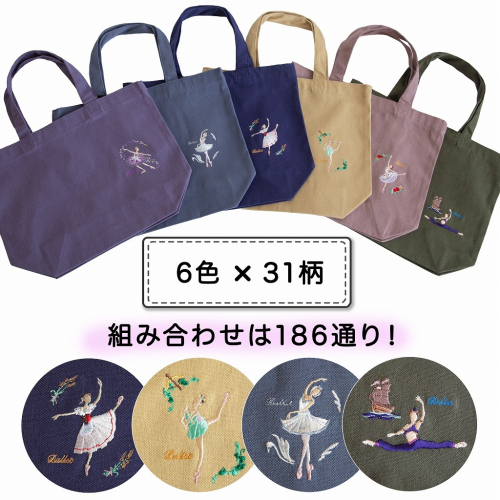 - 大人カラー バレエ刺繍 ミニトート 6色31柄から選べる オリジナル刺繍 日本製 【サヨリ商店街】