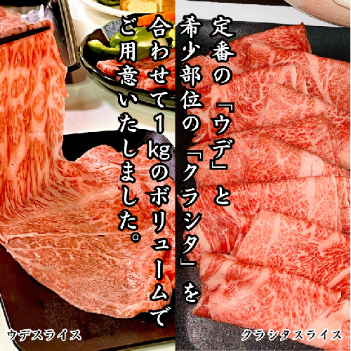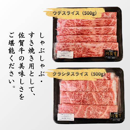 - 佐賀牛(プレミアム)スライス 食べ比べ 1kg ウデ クラシタ すき焼き しゃぶしゃぶ:B430-007