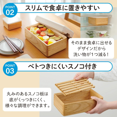 桐の特性である熱伝導率の低さを活かし、レンジで温めた直後でも本体が熱くなりにくくレンジから直接出して食卓に持っていけます。