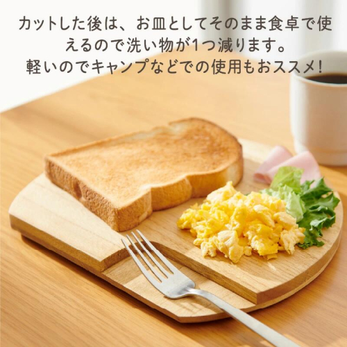 朝食のパンと目玉焼きなどをのせてワンプレートで食べていただき洗い物を減らす、軽いのでキャンプなどに持って行って使っていただくのもおススメです。