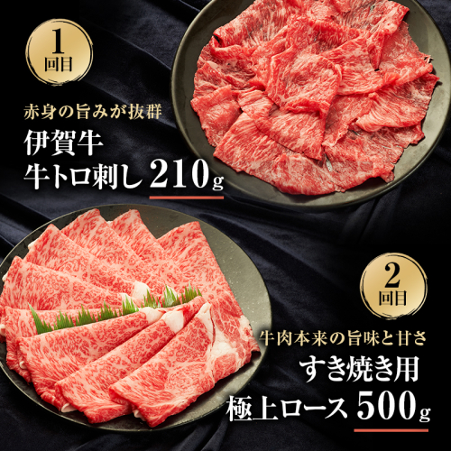 伊賀牛 6ヶ月連続お届け 定期便 A [ 伊賀牛牛トロ刺し すき焼きセット 伊賀牛ステーキセット 伊賀牛切り落とし 焼肉セット5人盛り ] オクダ 牛肉 高級 和牛 肉 伊賀牛肉 伊賀 人気 自宅用 グルメ お取り寄せ 誕生日 お祝い 贅沢 三重