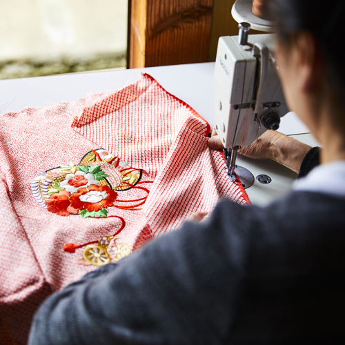着物を当店までお送りいただく→着物解体→クリーニング→ブランケット縫製の流れで作業を進めていきます。